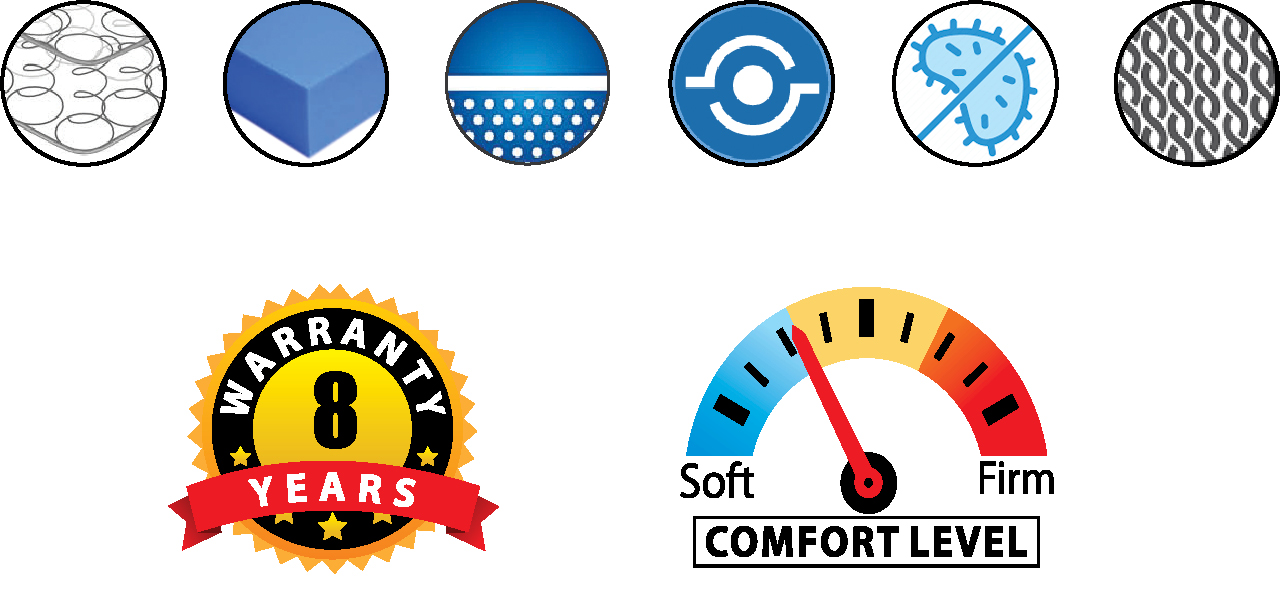 This Eurotop Spring Mattress is designed to give you a plentiful night' rest.Made with Bonnel spring construction and using high density and super softy foam on Eurotop to give more comfortable and durable.It balances your body and keep it well supported during the night, releasing built up tension in muscles and joints.quilted in high GSm knitted fabric is breathable and support air circulation.